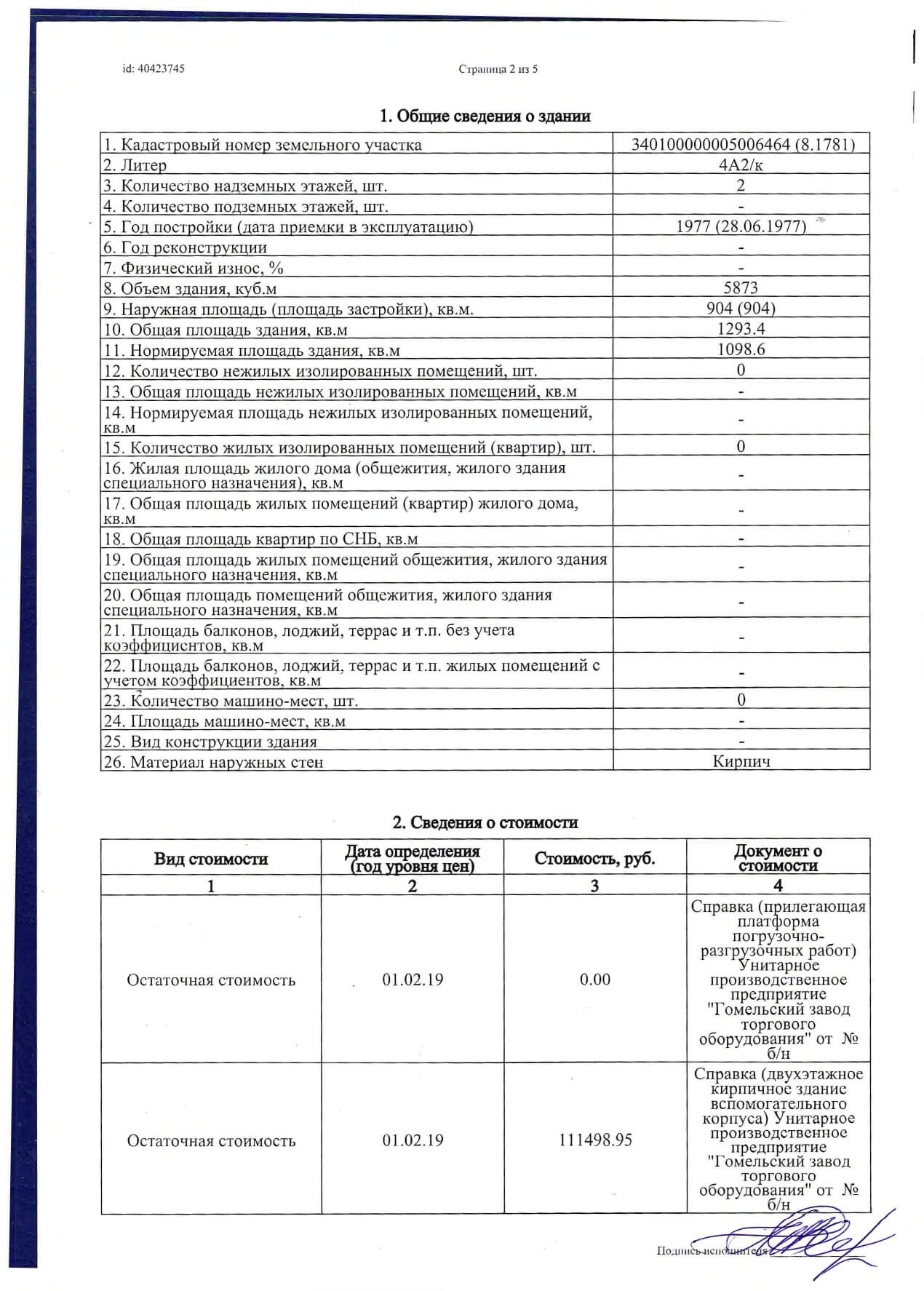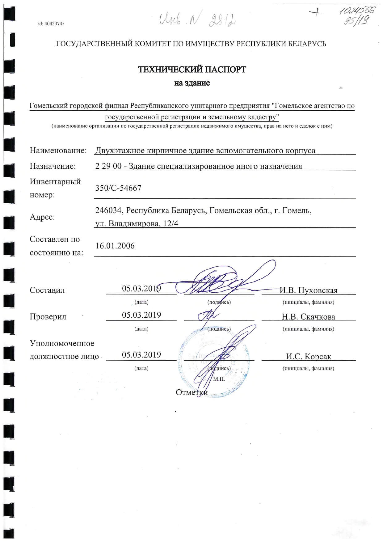 2-ух этажное кирпичное здание вспомогательного корпуса общей площадью 1293.40 м2
